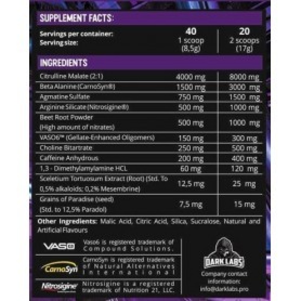 Spezifikationen Dark Labs CRACK Pre-Workout Dark Labs