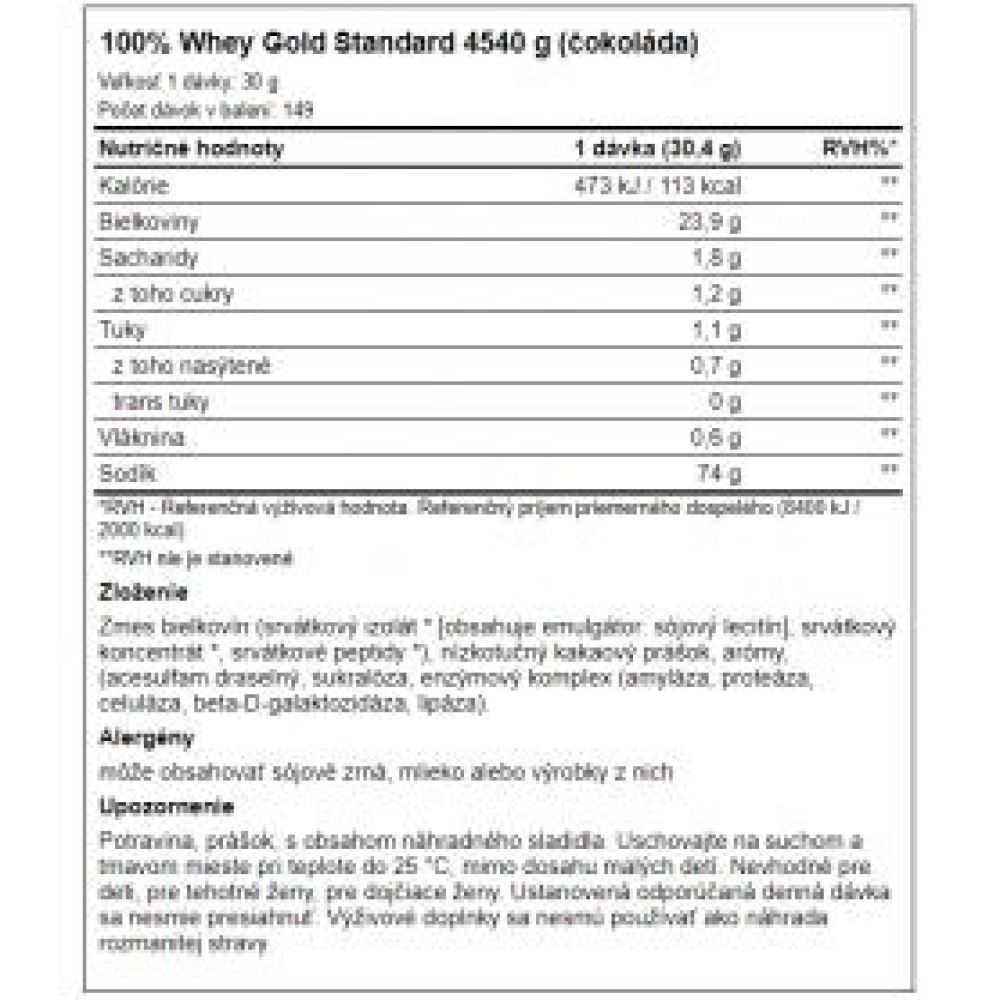 Spezifikationen Optimum Nutrition 100 Whey Gold Standard 4540 g Optimum Nutrition